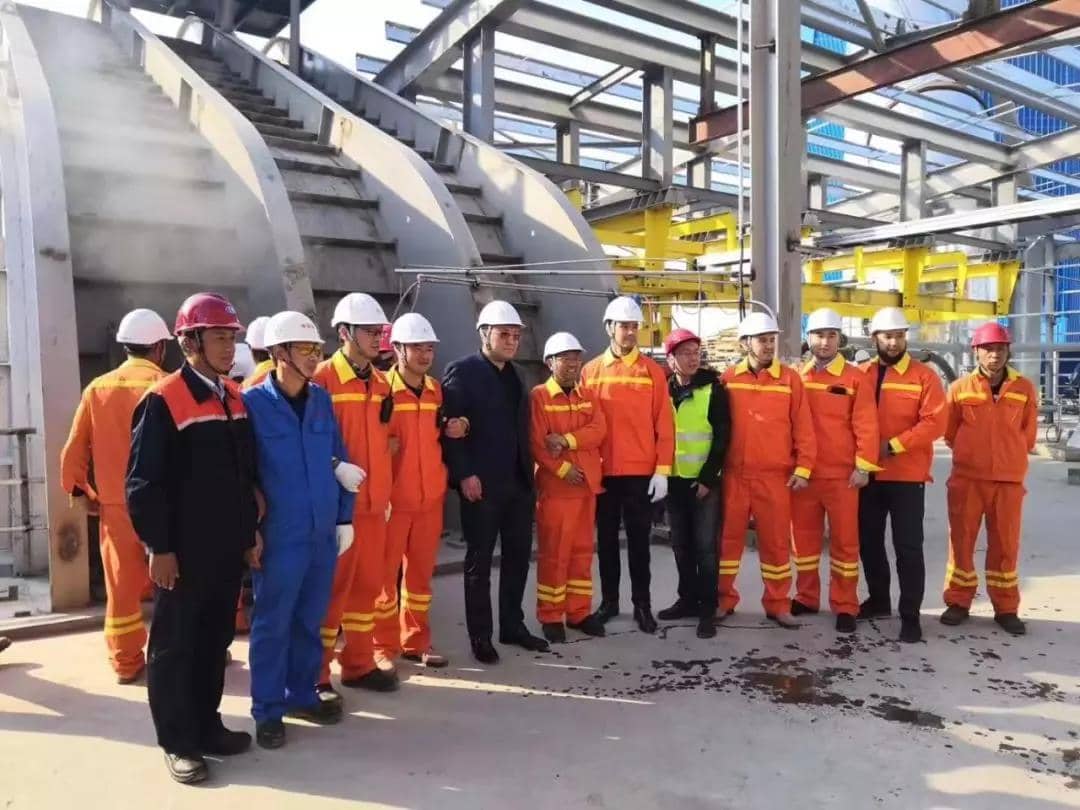 亞非企業管理有限公司曹總、江蘇鵬飛集團項目組共同見證了這一時刻。在點火儀式上,業主對公司項目部給予了高度評價。