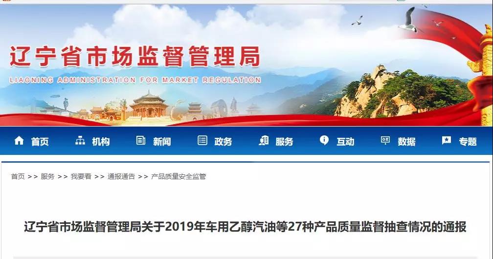 近期,遼寧省市場監管管理局發布《遼寧省市場監督管理局關于2019年車用乙醇汽油等27種產品質量監督抽查情況的通報》。