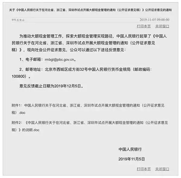 據悉,央行在研究試點方案的過程中充分聽取了銀行業金融機構及其客戶意見,廣泛征求了相關部門、地方政府、專家學者意見,最終確定的試點內容盡可能多地采納了各方意見。試點結束后,央行將評估試點成效,修改完善大額現金管理措施內容。同時,將統籌研究現金管理制度,為相關管理措施在全國推廣創造更好的條件。