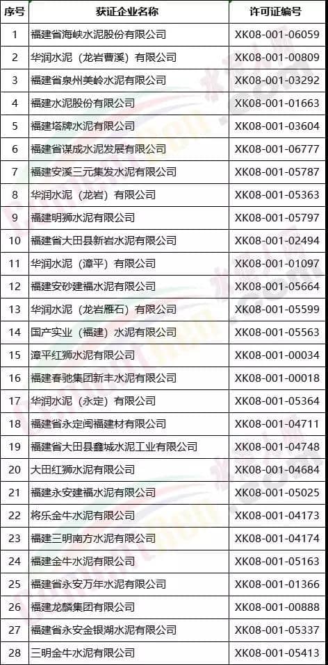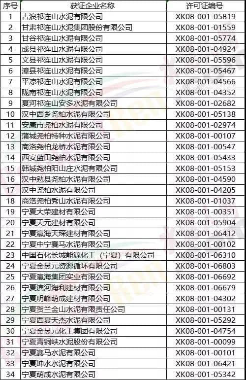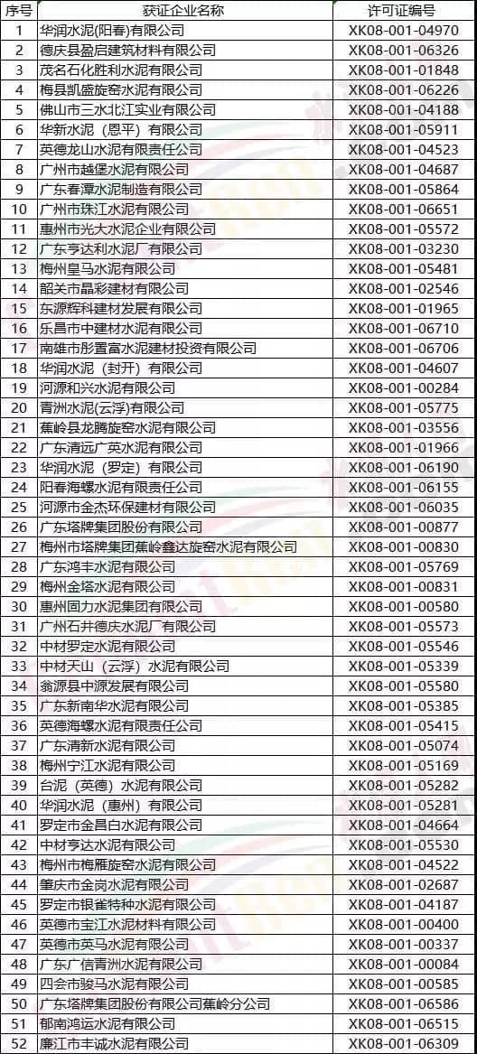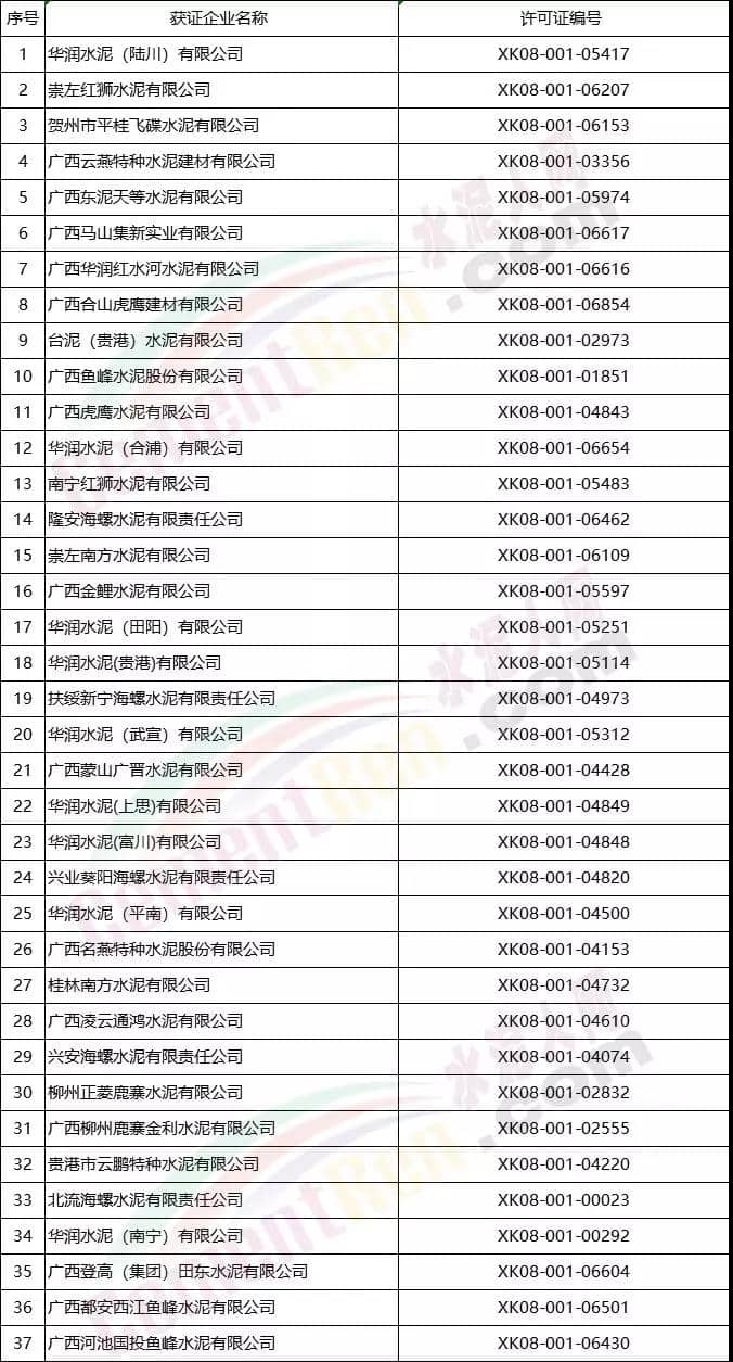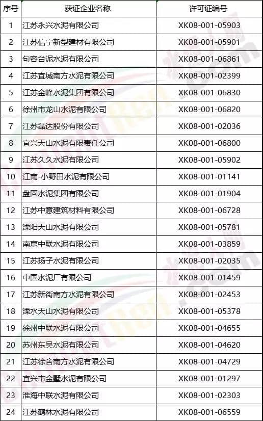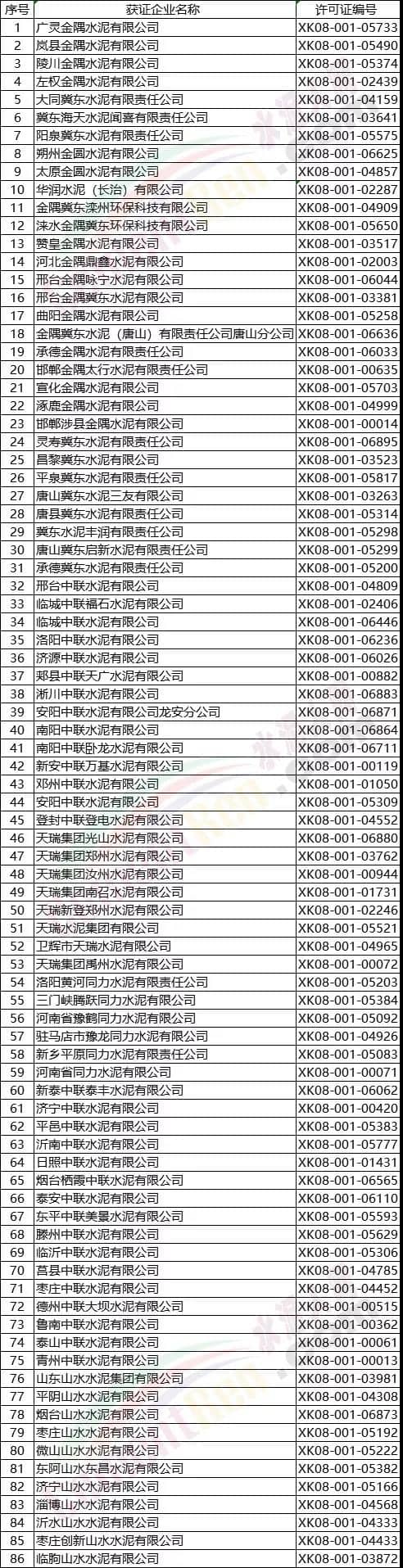 來源:市場監管總局生產許可證辦公室浙江省部分熟料生產企業名單