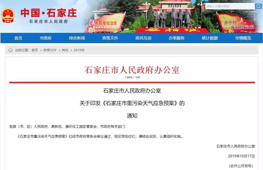 前不久,石家莊市人民政府辦公室也印發了《石家莊市重污染天氣應急預案)。