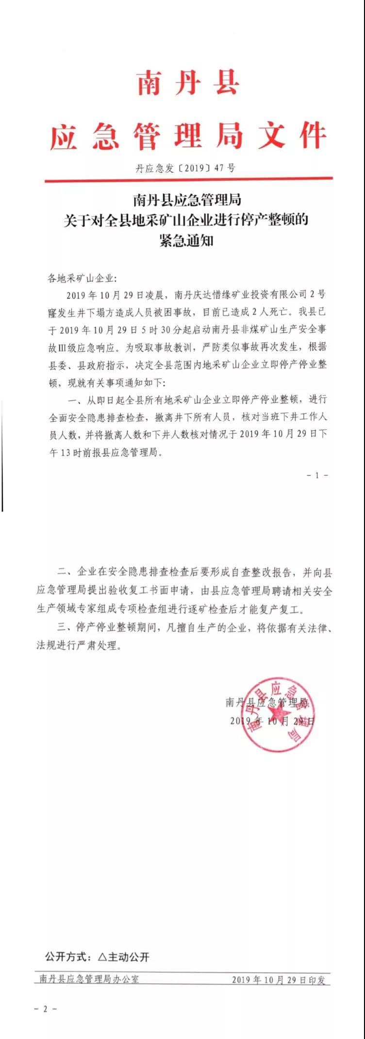 10月28日,廣西南丹縣慶達(dá)惜緣礦業(yè)投資有限公司所屬礦山發(fā)生冒頂事故,導(dǎo)致2人遇難、11人失聯(lián)。