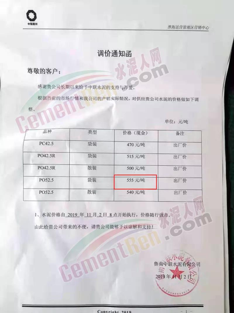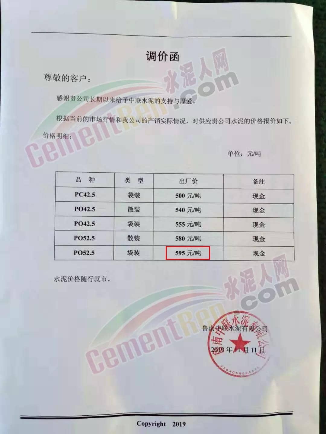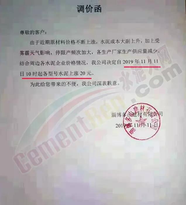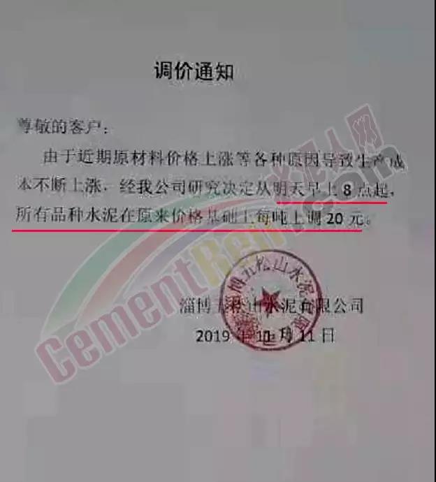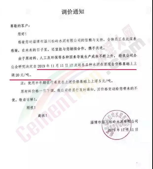 淄博魯中水泥有限公司調價函稱,根據當前水