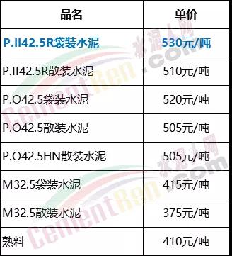 昨日,魯南中聯水泥公布的最新掛牌價顯示,PO52.5袋裝水泥報價595元/噸,PO42.5散裝水泥540元/噸,PC42.5袋裝水泥500元/噸。從本月初魯現中聯水泥公布的掛牌價來看,PC42.5袋裝現金價470,PO52.5袋裝555元/噸,PO42.5R散裝500元/噸,各標號水泥統一上調30-40元/噸。