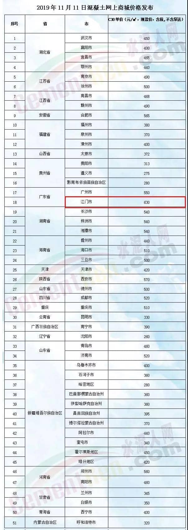 11月11日混凝土行業最大上市公司——中建西部建設在自己的電商平臺發布了最新的混凝土報價。