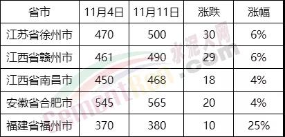 小編注意到,本周商品混凝土價格與上周相比多有上漲。其中江蘇省徐州市C30混凝土較上周上調了30元/方,江西省贛州市較上調上調了29元/方,漲幅均達到6%。