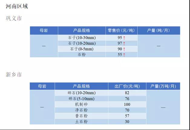 砂石方面因供需失衡,多區域出現較大缺口和供需失衡現象。相關統計數據顯示,河南省建筑用砂年需求量約2.1億噸,而全省經批準許可的河砂開采量僅4000萬噸左右,建筑用砂缺口達1.7億噸。缺口高達81%,砂石供需矛盾愈發突出。砂石協會近期公布的數據顯示,河南區域機制砂出廠價接近100元/噸。各類石子均現價格上漲。