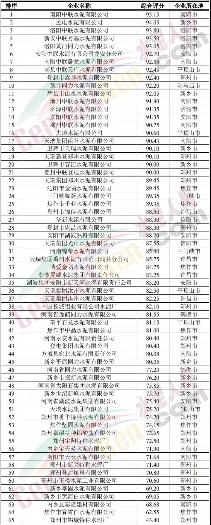 水泥人網小編注意到河南省2019年度綠色環保引領企業名單中包括天瑞集團鄭州水泥有限公司、 登封市嵩基水泥有限公司、 登封市宏昌水泥有限公司、天瑞新登鄭州水泥有限公司、 南陽中聯水泥有限公司等五家水泥行業企業。
