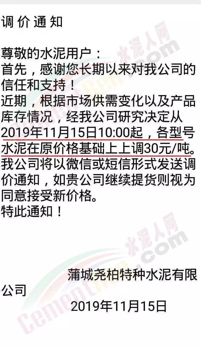 一、2019年11月15日零時起,臨汾市混凝土價格在原基礎上上調80元/噸。(暫定,視水泥價格上漲情況隨時調整)。