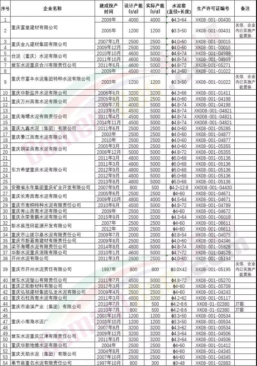 水泥人網(wǎng)消息:日前,重慶市經(jīng)信委發(fā)布了最新版《重慶市水泥熟料生產(chǎn)線清單》。
