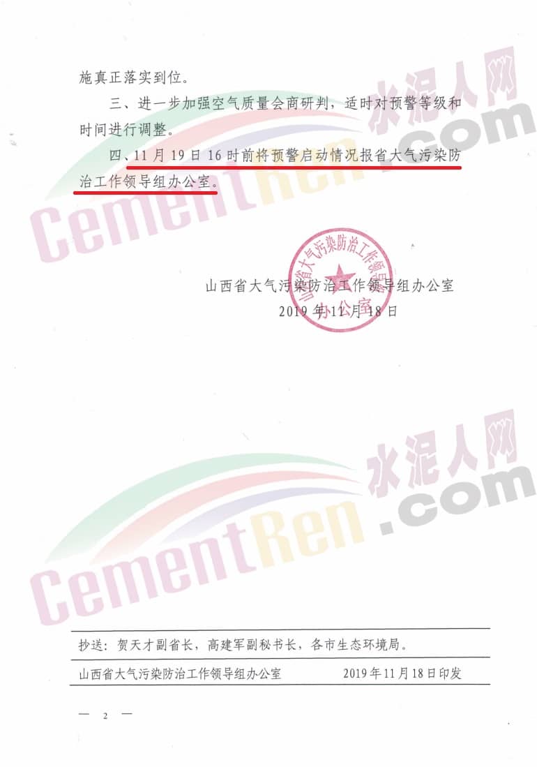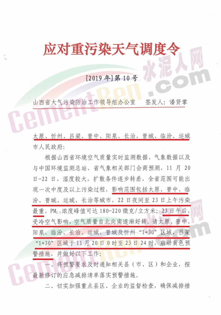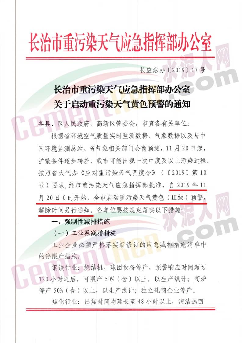 水泥人網消息:日前,山西省長治市、太原、忻州、晉中、陽泉、晉城、臨汾運城,河南省南陽、三門峽,河北省唐山市相繼發布了重污染天氣橙色預警(二級)響應通知。