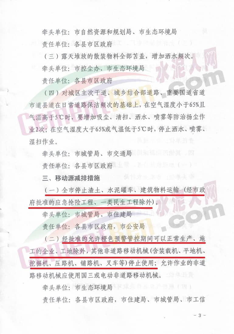 除應急搶險外,全市所有房屋建筑、拆遷、市政、道路、水利、綠化、通訊等施工工地停止石方作業、建筑拆除、噴漆涂刷、護坡噴漿、混凝土攪拌等;礦山、砂石料廠、石材廠、石板廠等露天作業;所有企業嚴禁露天堆放散裝物料。具體如下: