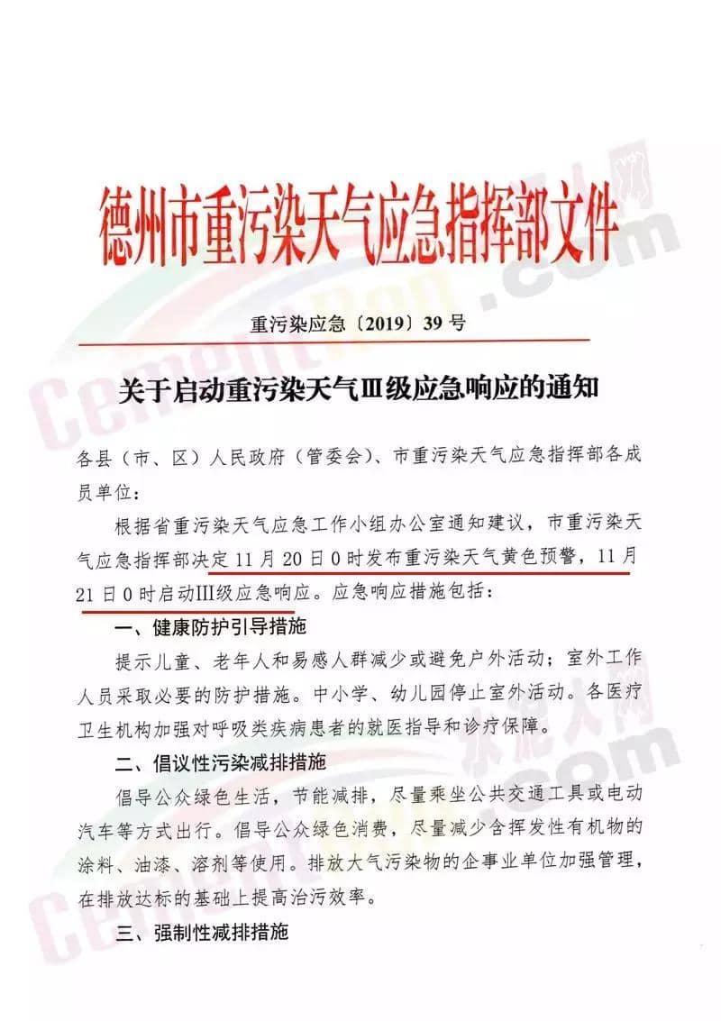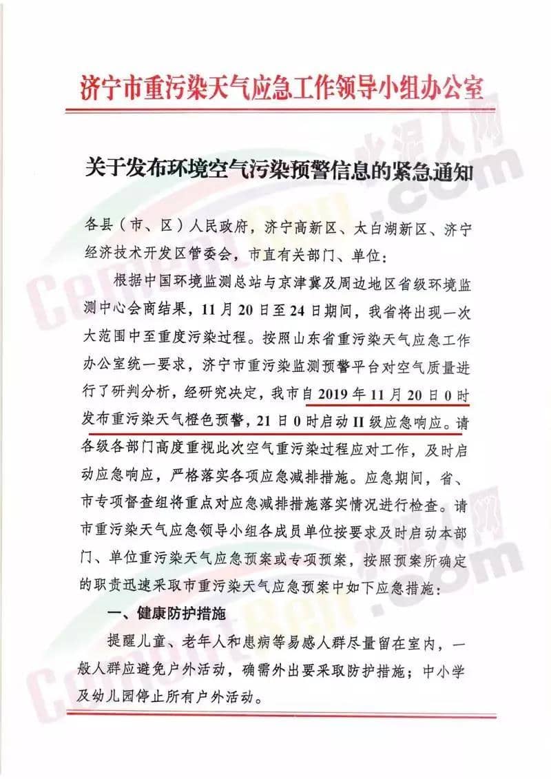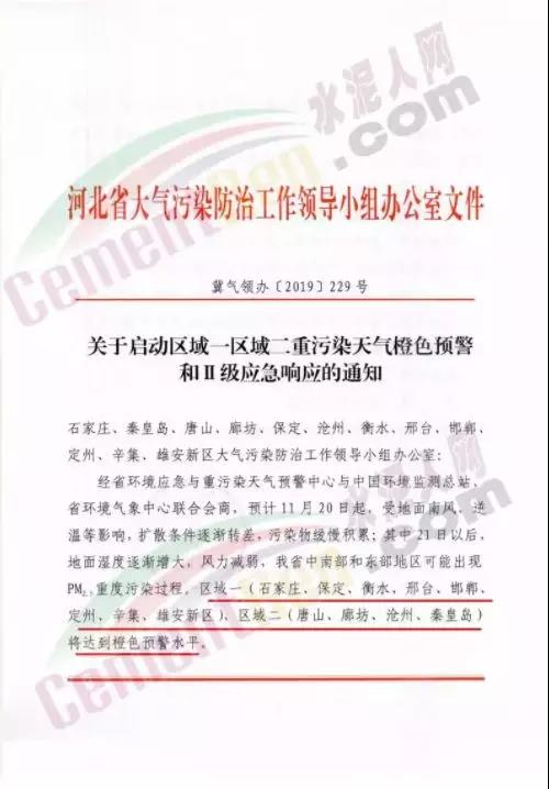 以河北省的“水泥窩”唐山市為例,當地政府于11月19日發布了《關于啟動重污染天氣Ⅱ級應急響應的通知》稱自2019年11月19日20時,全市啟動重污染天氣Ⅱ級應急響應。