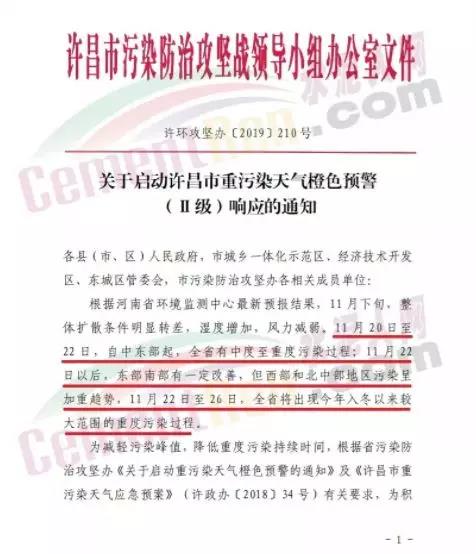 以許昌市為例,當地污染防治攻堅戰領導小組通知 自11月19日0時啟動重污染天氣橙色,實施II級應急響應措施。停產類企業包括水泥熟料企業(經批準協同處置,危廢、污泥等涉及民生的熟料生產線11月19日0時停產到位)、水泥粉磨企業、礦渣微粉企業、水泥制品企業,商砼企業等。
