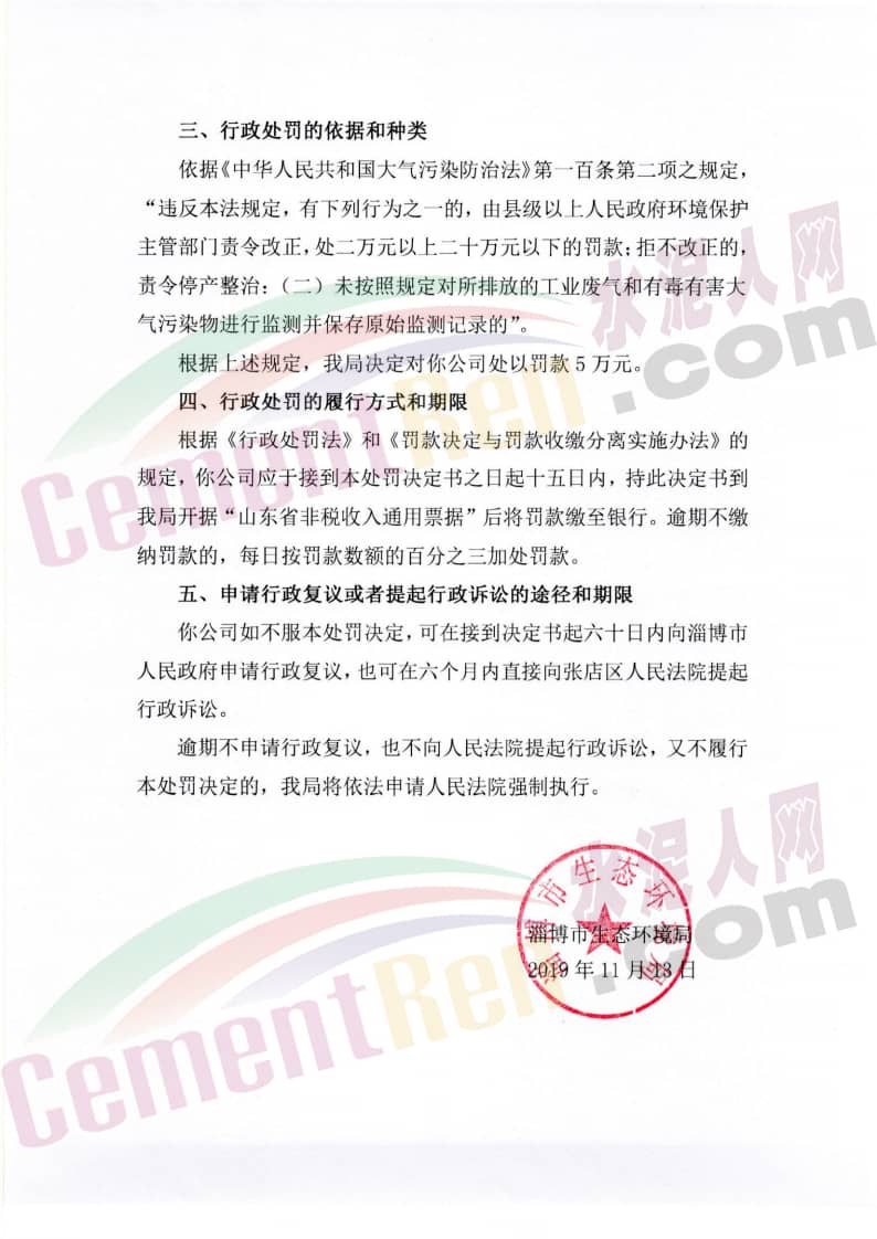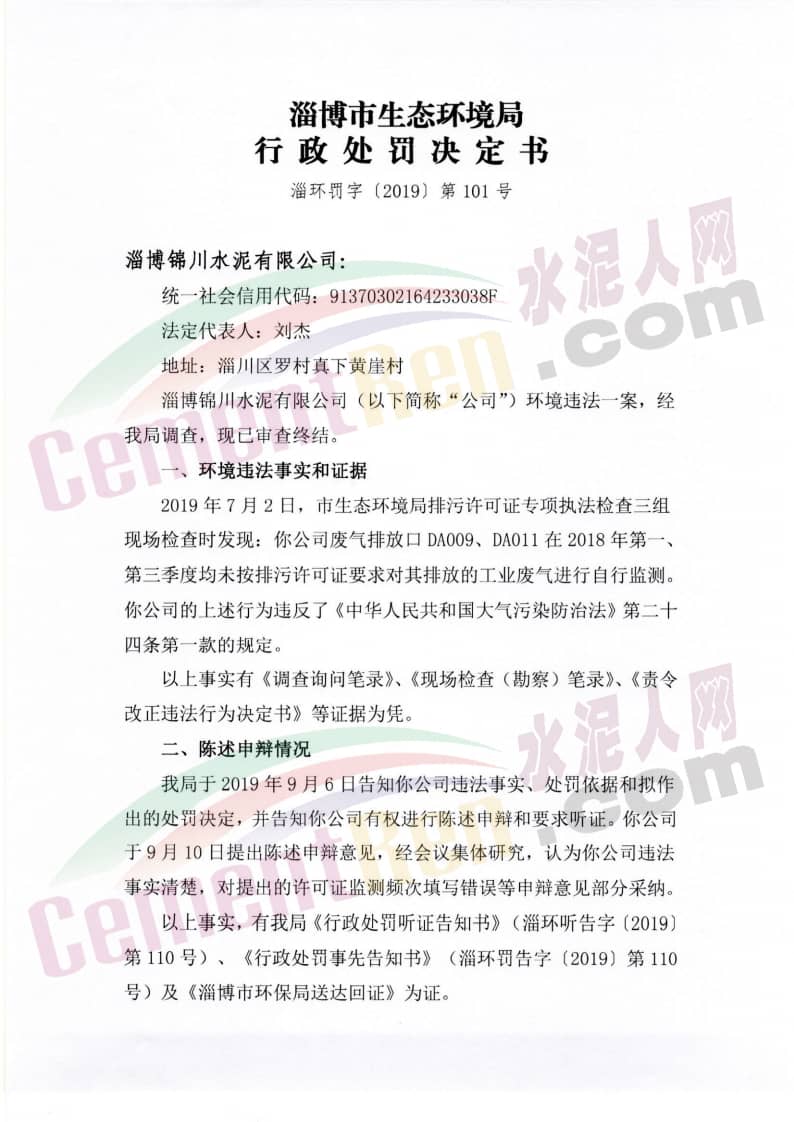 據(jù)水泥人網(wǎng)了解,今年5月份,淄博錦川水泥有限公司未依法取得排污許可證排放大氣污染物案也曾被行政處罰,根據(jù)淄博市商議,決定處罰淄博錦川水泥有限公司罰款10萬元。具體如下: