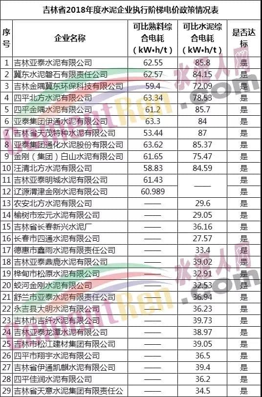 附吉林省2018年度水泥企業(yè)執(zhí)行階梯電價(jià)政策情況表:
