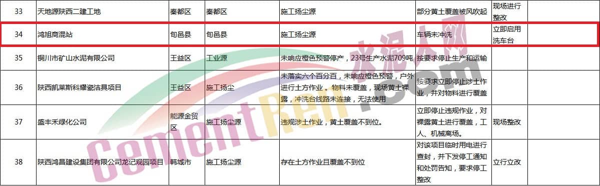 日前,水泥人網自陜西省生態環境廳獲悉,按照陜西省重污染天氣應急指揮部辦公室《關于提示應對重污染天氣的函》要求,陜西省生態環境執法總隊及各市區執法部門對重污染天氣應急響應措施執行情況進行了專項執法檢查,相關檢查問題匯總如下: