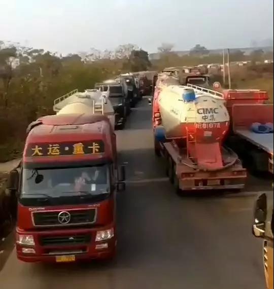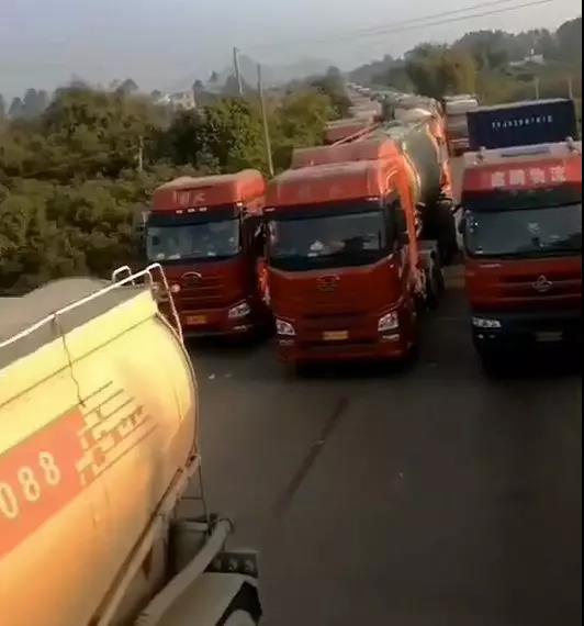 陜西關中地區,司機排隊兩天拉到水泥,大因雪天路滑,緩行兩天兩夜才走出秦嶺。
