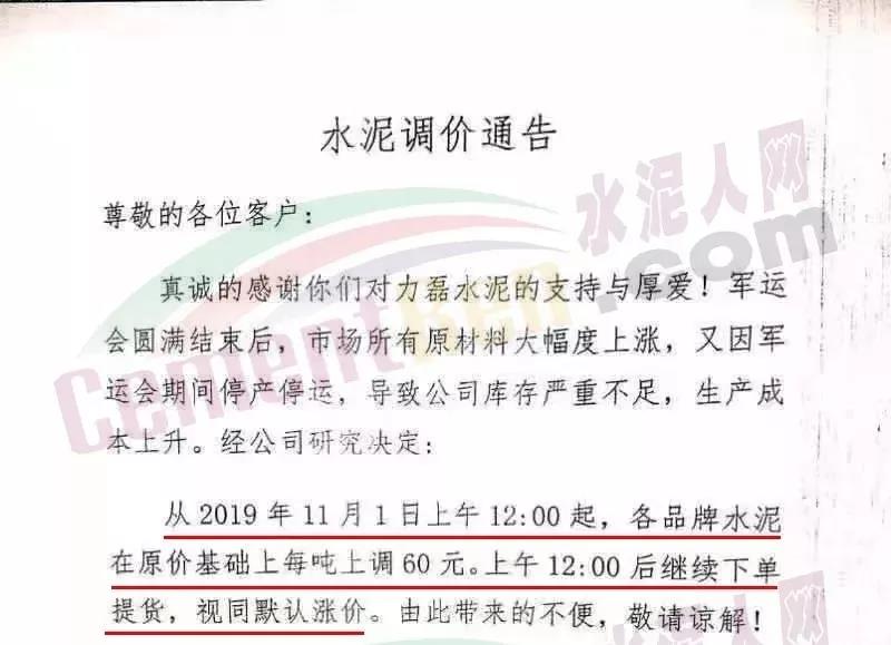 錦榮水泥自10月31日以來水泥價格連續上漲11次,其中從11月10日到11月18日,9天時間該企業連發了9張調價函。經過11輪上漲,該企業P.O42.5水泥累計漲價高達300元/噸,目前P.O42.5散裝含票出廠價高達680元/噸,加上運費到位核心區域價格已突破700元/噸。 河南三門峽市澠池仰韶水泥廠自11月8日起連發三份漲價函,截止11月13日,澠池仰韶水泥42.5級散裝水泥出廠價為610元/噸,52.5級散裝水泥出廠價為710元/噸。近期河南區域水泥價格又出現持續暴跌現象,兩天就跌了150元/噸,而且近期還在向下調整,跌價空間幾乎把之前的漲幅全部抹平。這種大漲大跌的市場環境,是極為不正常的。福建區域粉磨站“沒米了”,漲30元/噸福建區域熟料供應緊張,部分粉磨站企業通知無水泥可賣。某水泥粉磨企業負責人對水泥人網表示:“沒米了!” 福建區域企業,一直都是從廣東及廣西采購熟料,近來枯水加上治超,熟料到位價格上漲。福建區域多家企業便隨之上調水泥價格,上調幅度30元/噸。天津漲價,拉開了京津冀區域的漲價的序幕21日區域主導企業集體上調水泥價格。北京金隅水泥經貿有限公司天津分公司發調價通知,由于目前企業受環保錯峰、道路運輸治理等因素的影響,導致企業水泥庫存較低;同時,礦粉等原材料價格持續走高、京津冀東地區環保力度加大,環保投入增加,水泥生產成本大幅上漲。企業自11月21日8時起,PO42.5及以上規格散裝水泥產品出廠價格在原價格基礎上上調20元/噸。 陜西是兩輪漲價,共漲60元/噸,遭遇河南水泥車“搶購”本月15日前后陜西關中地區冀東,聲威,堯柏等多家主導企業通知上調水泥價格,漲幅30元/噸。18日前后大批河南水泥運輸車到陜西關中區域調運水泥,令區域內庫存減少,部分企業再次上調30元/噸。一片漲勢之中唯貴州區域遭遇“寒冬”,水泥價格低到200元以下,甚至有局部區域出廠價 180元/噸左右。1200元~180元,1020元的差價,是水泥行業冰火兩重天的現狀。目前的水泥價格似乎已處在了“失控”邊緣。部分企業又開啟了大票模式,在今年斷供后又開售2020年的水泥期貨。與上年相比,華東上海周邊區域似乎較平靜。上年末,華東區域水泥價高,下游競價銷售,出現千元左右一噸的水泥。后隨著華南廣西區域熟料和水泥到位,價格才逐步趨于平穩。今年1季度下游施工企業提前備貨,也為今年華東區域的市場穩定提前做了“鋪墊”。另據消息稱,華東沿海區域今年以來一直有大企業采購進口熟料到港,區域內熟料供應平穩,繼而水泥價格也處于穩中有漲態勢。