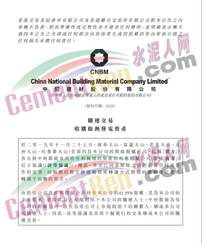 中材節(jié)能為母公司的附屬公司,母公司中國建筑材料集團(tuán)有限公司直接和間接合計(jì)持有本公司約41.55%股權(quán),其為公司的主要股東。