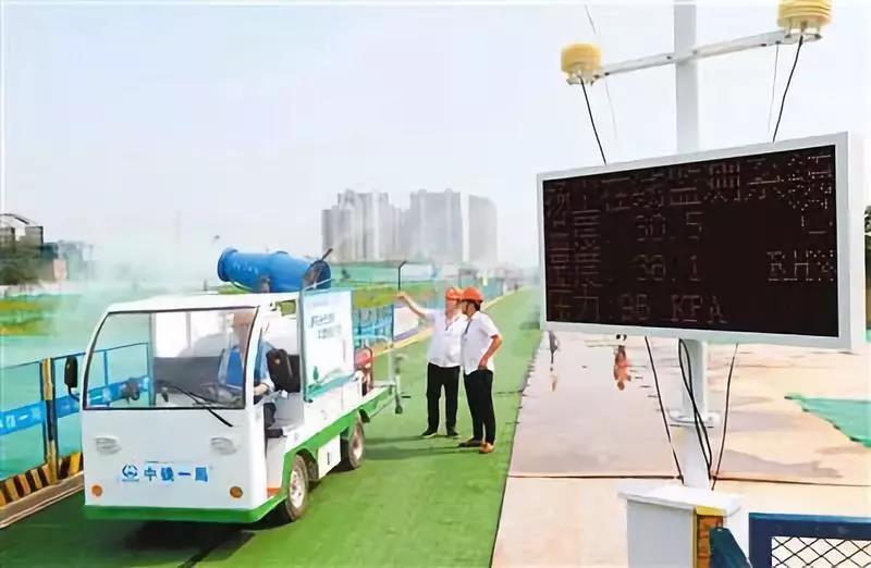 地鐵建設工地利用除塵霧炮機和揚塵在線監測系統防治揚塵污染(資料照片)。(首席記者 李明 攝)