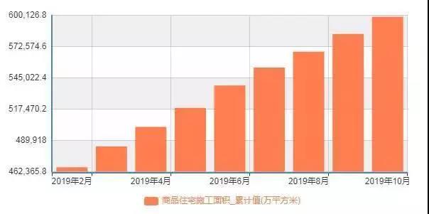 1~10 月份,房地產開發企業房屋施工面積 854882 萬平方米,同比增長 9.0%,增速比 1~9 月份加快 0.3 個百分點。其中,住宅施工面積 598802 萬平方米,增長 10.4%。房屋新開工面積 185634 萬平方米,增長 10.0%,增速加快 1.4 個百分點。