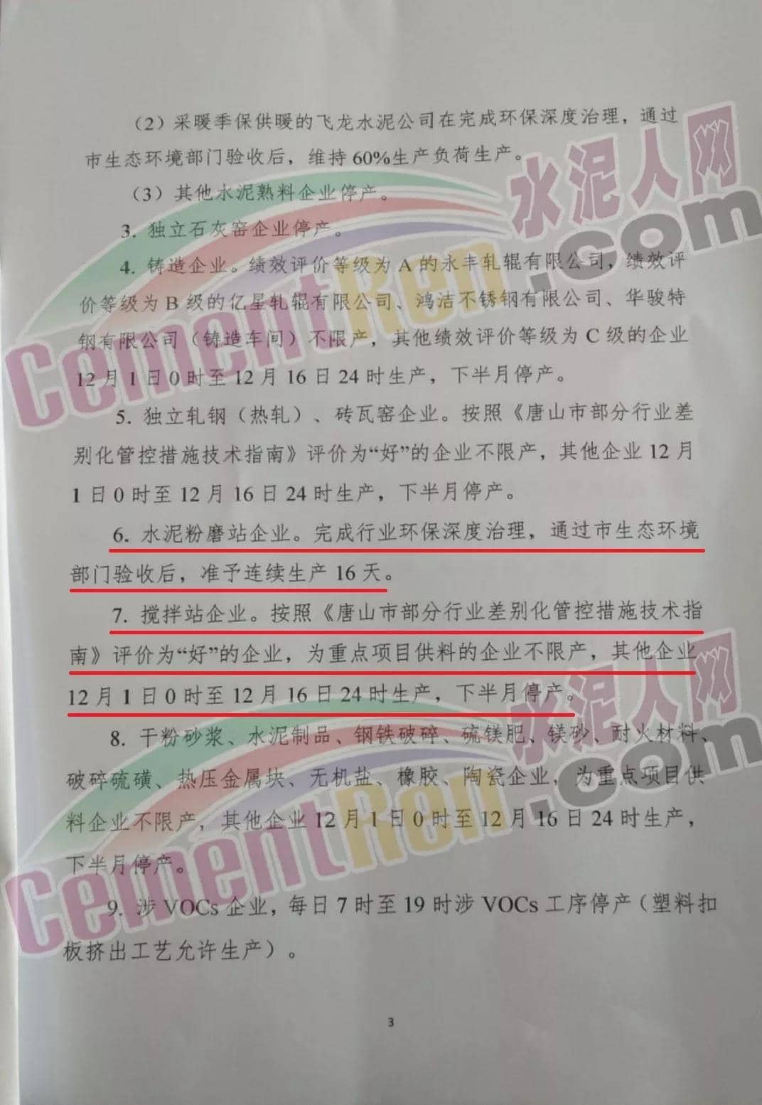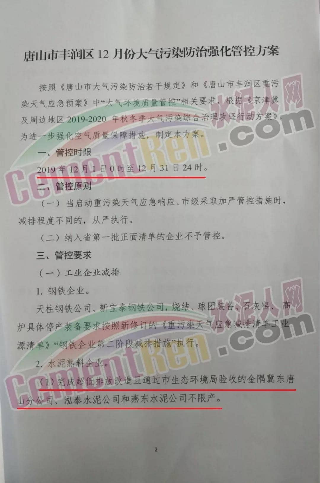 (1) 完成超低排放改造且通過市生態環境局驗收的金隅冀東唐山分公司、金隅冀東灤州公司,啟新水泥、三友水泥,泓泰泥和燕東水泥不限產。
