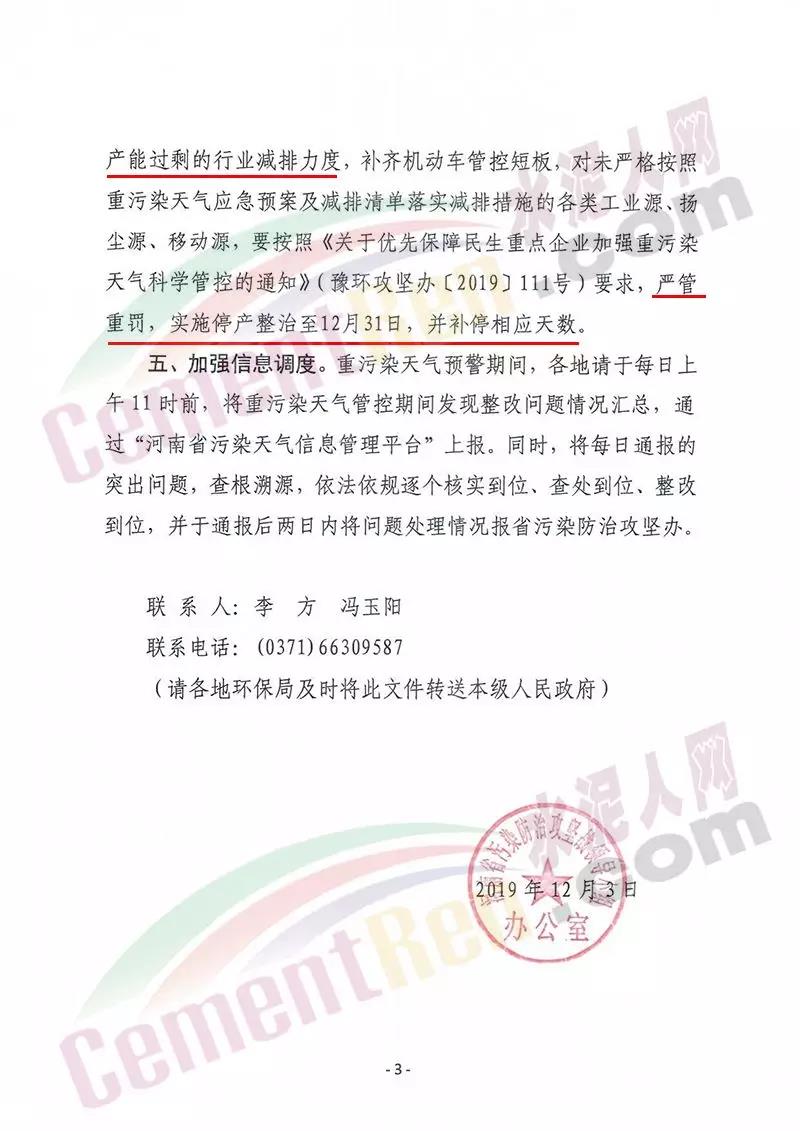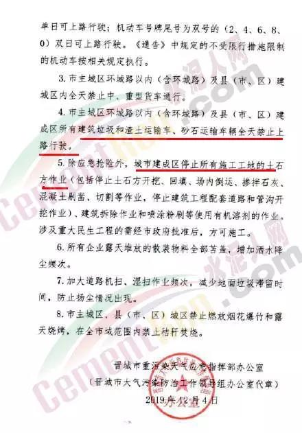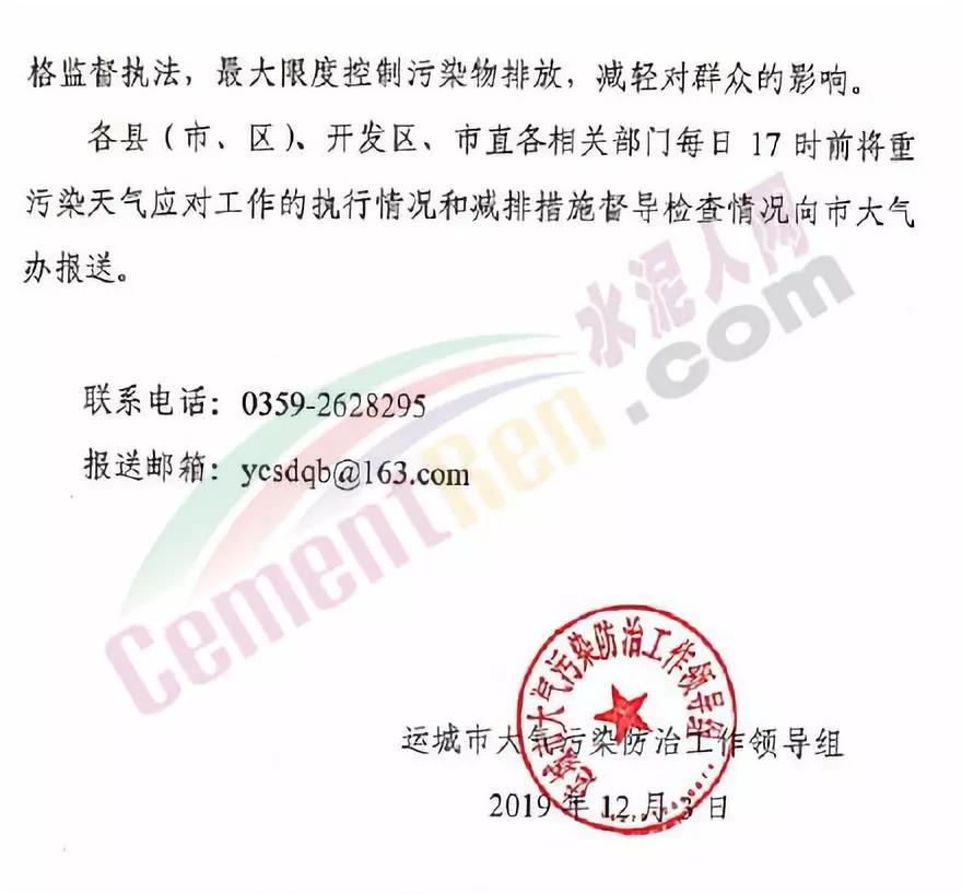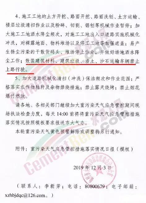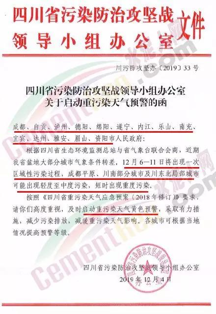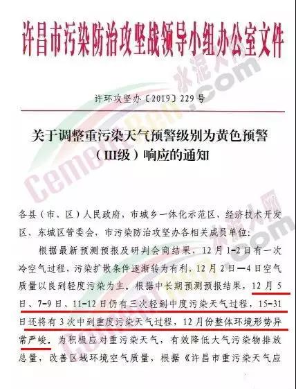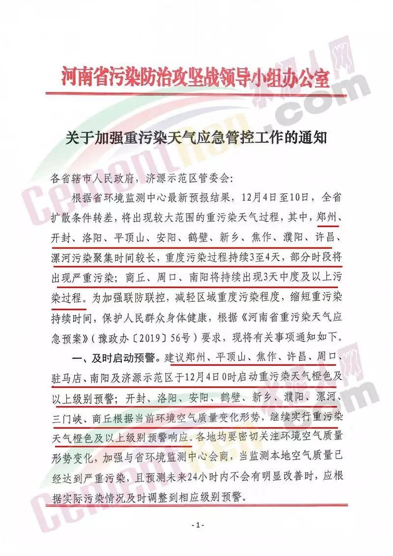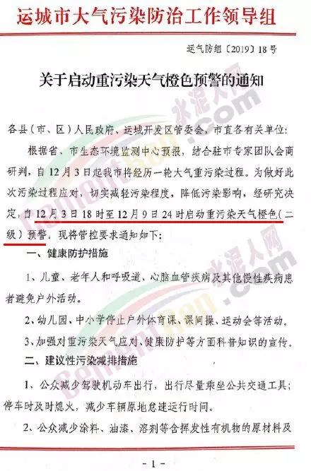 據了解河南洛陽市已于 12月4 日 12 時起啟動了重污染天氣紅色(I 級)預警響應。預警響應期間,要求,全市鋼鐵、焦化、氧化鋁、電解鋁等15個實施績效分級減排的企業,應嚴格落實紅色預警下的減排措施。對應進未進應急減排清單的涉氣企業,自發現之日起至2020年3月底禁止生產。預警響應期間,除了經過審批的民生工程和搶險救災工程在全面做好污染防治措施的情況下準許施工(土石方作業停止)外,全市其他各類施工工地嚴格落實。停止土石方、渣土清運、建筑拆除、混凝土 攪拌及澆筑作業。所有露天礦山開采企業在紅色預警期間停產。按照洛陽市大氣污染防治“百日攻堅行動”要求,城市區內重型貨車原則上禁止通行,所有重型貨車繞行至連霍高速、二廣高速和西南環城高速公路。確需進入城市區運輸的,經市公安部門審批后,在嚴格控制車輛排放標準、限制數量的前提下,按照規定路線和規定時間行駛。全市工業、駕校、鐵路貨場、物流運輸等企業在紅色預警期間嚴格落實國Ⅳ及以下排放標準的重型貨運車輛停止使用。城市規劃區范圍內工業企業、建筑工地停止使用非道路移動機械(搶險救災及保障城市運轉使用達標排放的除外)。焦作市污染防治攻堅辦通知,自2019年12月4日0時起,啟動重污染天氣橙色(Ⅱ級)預警,解除時間另行通知。許昌市啟動重污染天氣橙色(Ⅱ級)預警。預警通知提到12月5日、7-9日、11-12日仍有三次輕到中度污染天氣過程,15-31日還將有3次中到重度污染天氣過程,12月整體環境形勢異常嚴峻。