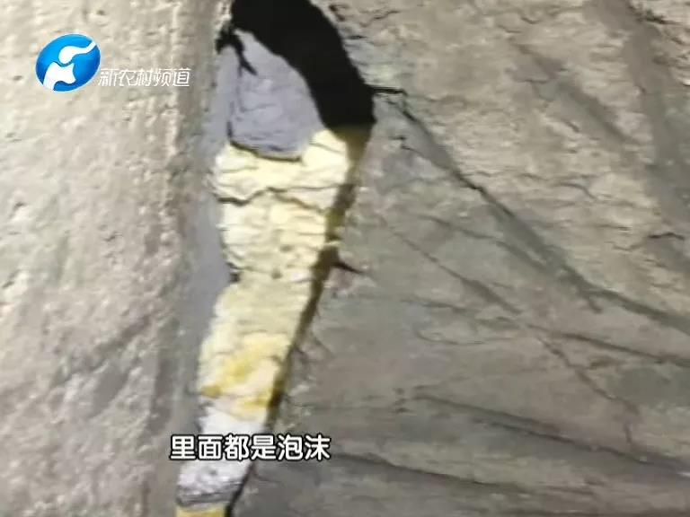 原來楊先生在交房之后發現房子里面有空鼓的現象,便讓維修人員把空鼓的地方敲了之后發現飄窗板上面墻邊的地方有裂縫,縫隙里面都是泡沫。