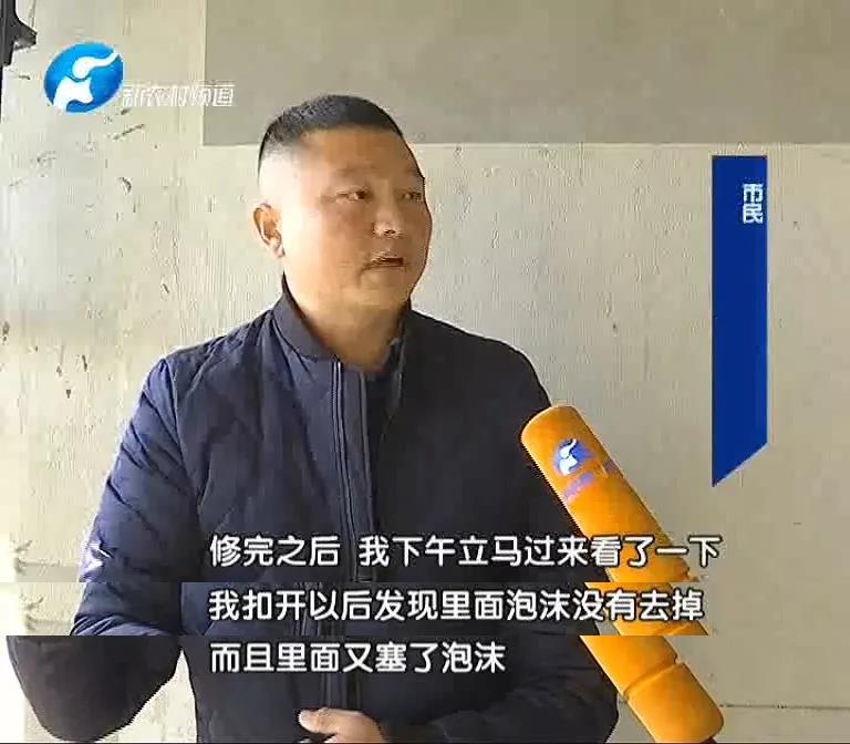 隨后楊先生便讓維修人員進行了第一次維修。在維修后,楊先生發現里面的泡沫沒有去掉,而且里面又塞了泡沫,于是他再次要求樓盤項目部解決此事。