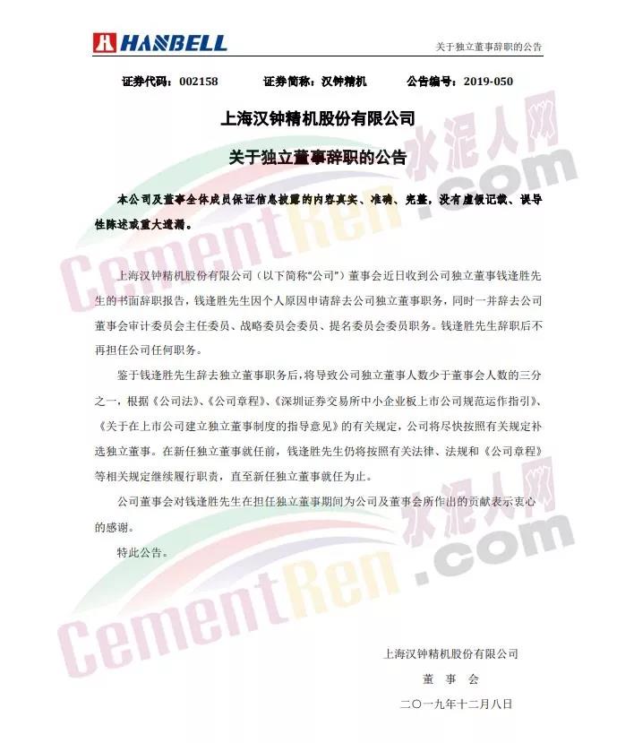 其中,漢鐘精機指出,錢逢勝因個人原因申請辭去公司獨立董事職務,同時一并辭去公司董事會審計委員會主任委員、戰略委員會委員、提名委員會委員職務。