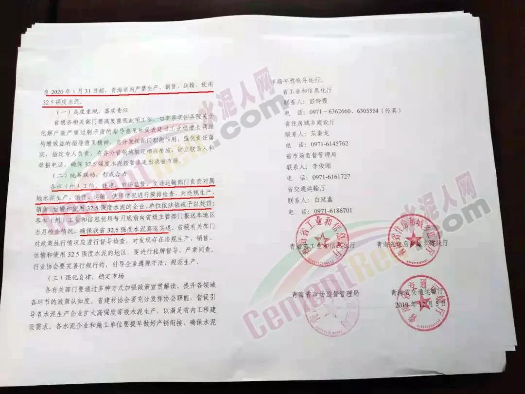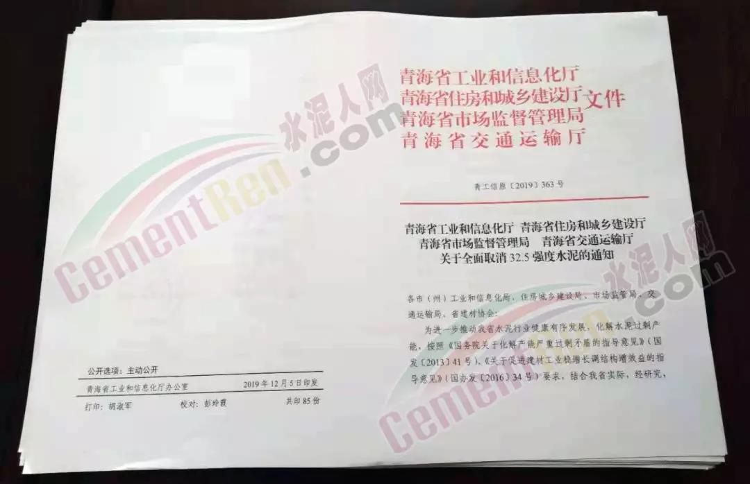 為進一步推動我省水泥行業健康有序發展,化解水泥過剩產能,按照《國務院關于化解產能嚴重過剩矛盾的指導意見》(國發(2013]41號)、《關于促進建材工業穩增長調結構增效益的指導意見》(國辦發[2016]34號)要求,結合我省實際,經研究,自2020年1月31日起,青海省內嚴禁生產、銷售、運輸、使用32.5強度水泥。