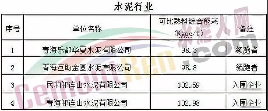 近日,青海省工業信息化廳發布了《青海省2018年電解鋁、水泥、鐵合金行業能效“領跑者”及入圍企業名單公示》。 其中,水泥行業青海樂都華夏水泥有限公司、青海互助金圓水泥有限公司、民和祁連山水泥有限公司、青海祁連山水泥有限公司4家水泥企業入選能效“領跑者”及入圍企業。 名單如下: (來源:青海省工業信息化廳)