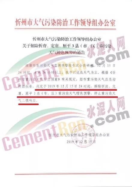 12月15日,山西省忻州市大氣污染防治工作領(lǐng)導(dǎo)組辦公室發(fā)布了《關(guān)于解除忻府、定襄、原平3縣(市、區(qū))重污染天氣橙色預(yù)警的通告》稱,根據(jù)市重污染天氣監(jiān)測(cè)預(yù)警組專家會(huì)商研判,12月15日24時(shí)起,未來(lái)36小時(shí)以上,忻州市以優(yōu)良天氣為主,根據(jù)《忻州市重污染天氣應(yīng)急預(yù)案》有關(guān)規(guī)定,經(jīng)忻州市重污染天氣應(yīng)急指揮部批準(zhǔn),決定于2019年12月15日24時(shí)起,解除忻府、定襄、原平3縣(市、區(qū))重污染天氣橙色預(yù)警。
