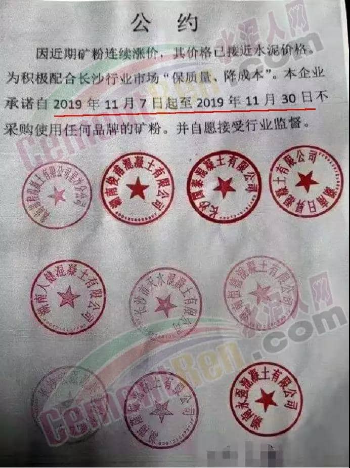 此前,因礦粉漲價,湖南區域十家商砼企業訂立公約自因礦粉連續漲價,其價格已經接近水泥價格,為積極配合長沙行業 市場“保質量、降成本”。企業承諾一段時間內不采購使用任何品牌的礦粉,并自愿 接受行業監督。
