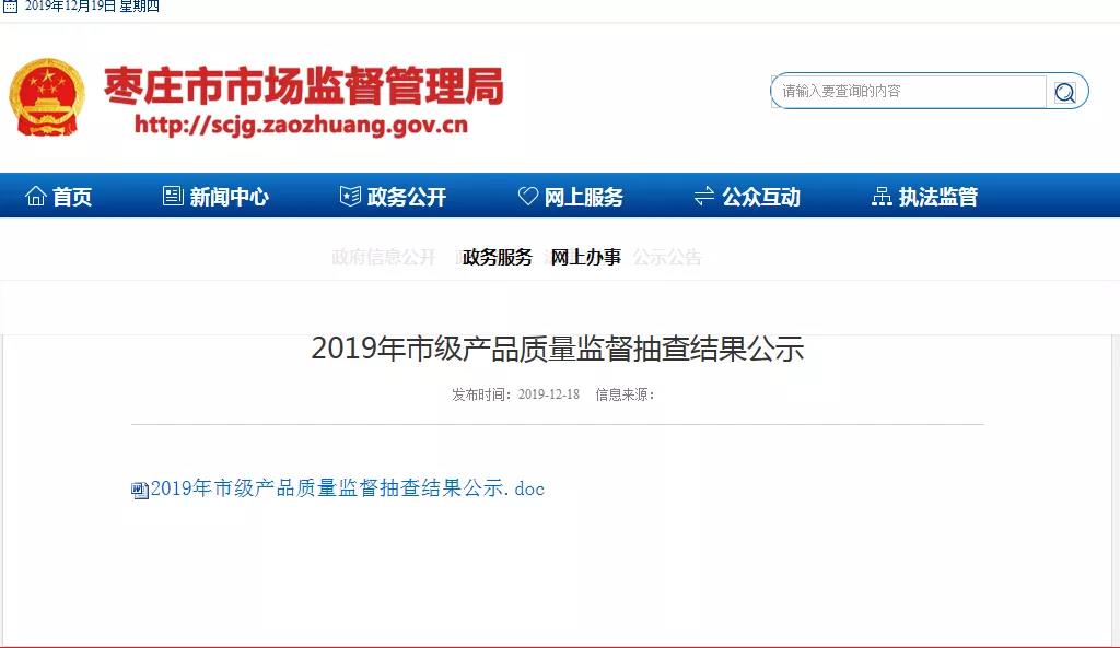 近日,棗莊市市場監督管理局公布了2019年市級產品質量監督抽查結果。