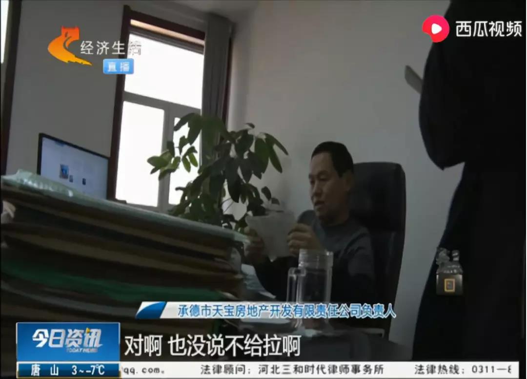 承德市天寶山房地產(chǎn)開(kāi)發(fā)有限責(zé)任公司負(fù)責(zé)人稱,你帶著電視臺(tái)來(lái)是給我們施加壓力,還是想干什么,你帶著電視臺(tái)來(lái)我就答復(fù)不了你。