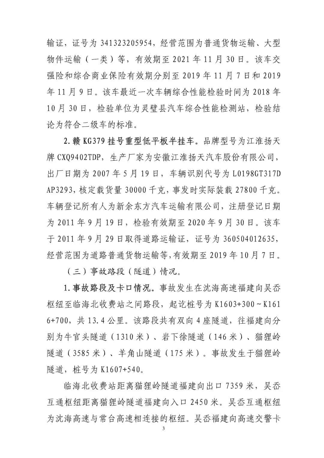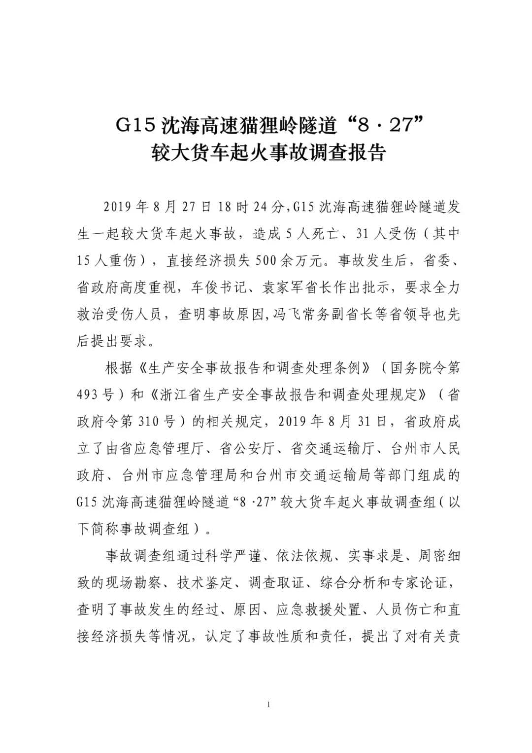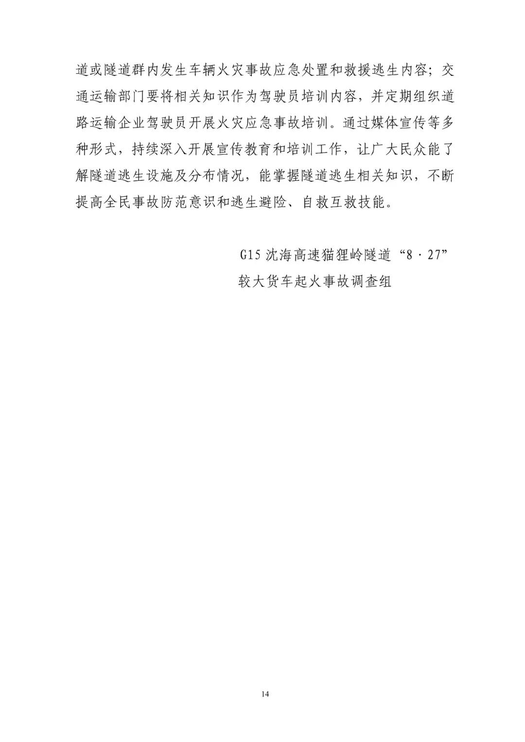 G15沈海高速貓貍嶺“8.27”較大貨車起火事故調查報告