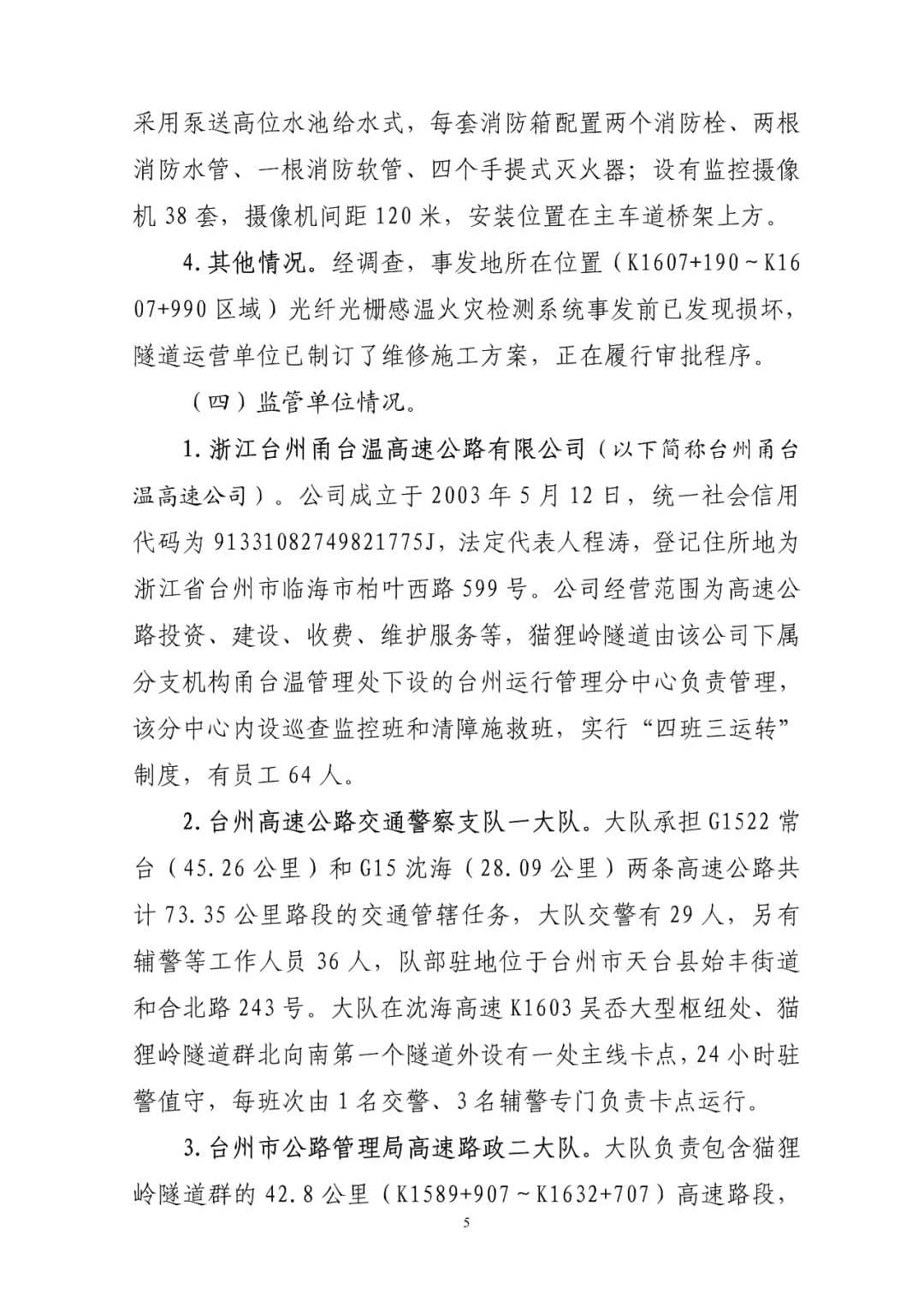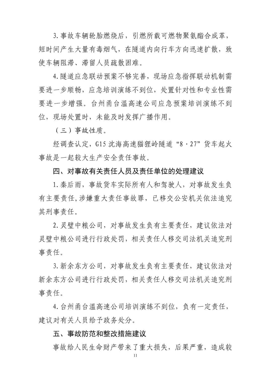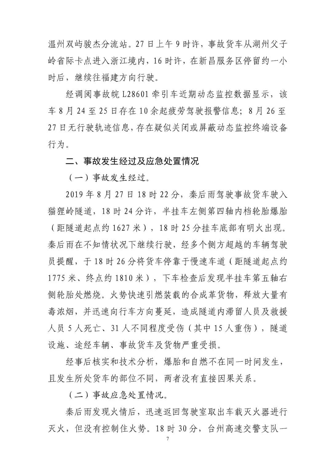G15沈海高速貓貍嶺“8.27”較大貨車起火事故調查報告