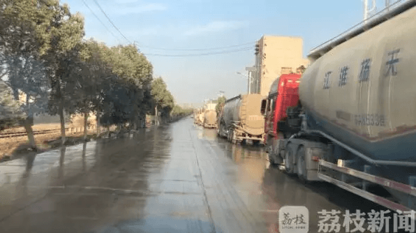 鶴林水泥公司位于鎮(zhèn)江市丹徒區(qū)高資鎮(zhèn),主要生產(chǎn)普通硅酸鹽水泥,根據(jù)知情人的指點,2019年12月9號下午,記者來到鶴林水泥公司的大門前,只見不寬的道路上停著幾十臺大型水泥罐車,這些罐車都已經(jīng)裝滿了水泥,等待上路出發(fā)。
