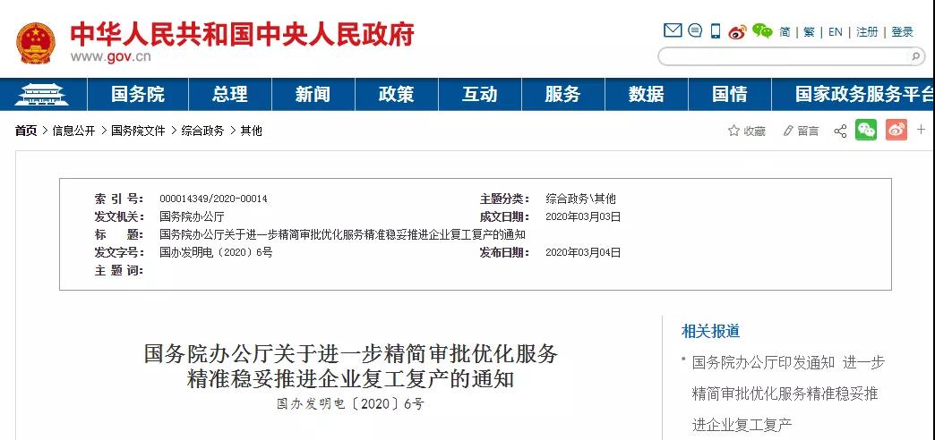 3月3日,國務(wù)院辦公廳緊急發(fā)文,《關(guān)于進一步精簡審批優(yōu)化服務(wù)精準穩(wěn)妥推進企業(yè)復(fù)工復(fù)產(chǎn)的通知》,要求低風險地區(qū)不得采取審批、備案等方式延緩開工。對于中、高風險兩類地區(qū),各省(自治區(qū)、直轄市)政府要在滿足疫情防控要求的基礎(chǔ)上,按照最少、必需原則分別制定公布全省統(tǒng)一的復(fù)工復(fù)產(chǎn)條件,對確有必要的審批和證明事項實行清單管理,逐項列明辦理程序、材料和時限,清單之外一律不得實施審批或索要證明,防止出現(xiàn)層層加碼、互為前置審批、循環(huán)證明等現(xiàn)象。嚴禁向企業(yè)收取復(fù)工復(fù)產(chǎn)保證金等。對重點行業(yè)企業(yè)復(fù)工復(fù)產(chǎn)可設(shè)置審批綠色通道,加快提高復(fù)工復(fù)產(chǎn)率。