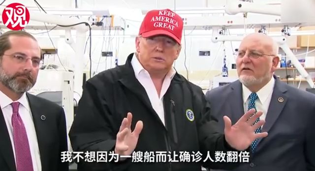 特朗普6日在亞特蘭大視察疾病控制與預防中心時表示:“我更傾向于讓他們(郵輪乘客)留在船上,但是我也理解其他人想要讓他們下船,到陸地進行隔離。”