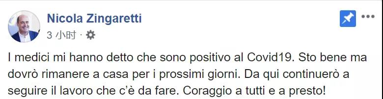 意大利民主黨領(lǐng)導(dǎo)人感染