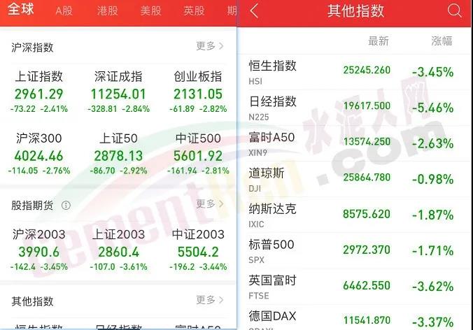 國際油價雪崩,導(dǎo)致全球避險情緒再次升溫,美國三大股指期貨開盤后,跌幅不斷擴大。截至發(fā)稿,道瓊斯指數(shù)期貨跌4.74%,標(biāo)普500指數(shù)期貨跌4.90%,納指期貨跌4.82%,全球主要股指集體大跌。