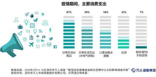 購買日常必需品的錢當然要花,87.0%的市民表示疫情期間主要支出為購買日常必需品(米油菜肉等)。米油菜肉如果你想買,想買就能買。疫情期間日常必需品開銷總體保持疫情前的消費態勢,居民花銷下降6.6%。今年過年不收紅包,要收就收口罩。有57.8%的市民表示主要支出為購買口罩、酒精和消毒水,防疫用品的支出平均提升了56.8%。