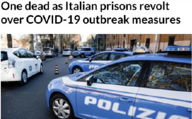 據環球網報道,意大利當地一家監獄人權組織當地時間8日表示,意大利4所監獄囚犯對該國控制新冠病毒疫情的新規定表示不滿,發生暴動事件,并導致1名囚犯死亡。亞洲新聞臺援引媒體報道稱,類似的事件也在意大利北部的帕多瓦和南部的巴里、福賈和巴勒莫等地上演。