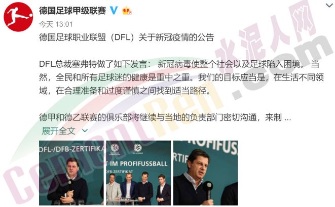 3月9日下午,德國足球職業聯盟DFL總裁塞弗特發表最新聲明稱,德甲和德乙聯賽的俱樂部將繼續與當地的負責部門密切溝通,來制定之后比賽日的安排。同時毫無疑問,本賽季要像計劃中的一樣在5月中旬結束。