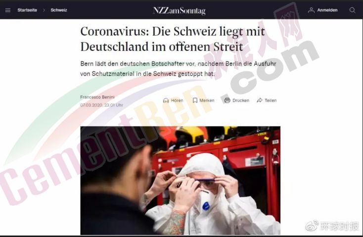 由于防疫物資緊張,海外版“攔截口罩”劇情上演。據《新蘇黎世報》等媒體3月7日報道,近日,因為德國限制口罩及其他防疫物資出口,德國海關上周攔截了24萬只瑞士進口的防護口罩,導致同樣急需物資抗擊疫情的瑞士大為不滿。數據顯示,瑞士國內目前已確診超200例新冠肺炎病例,國內醫療物資告急。