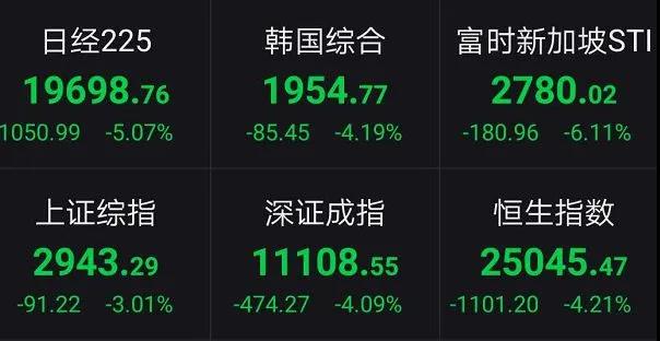 亞太股市方面,日經225指數大跌超5%以上,刷新2019年1月初以來低位。越南股市擴大跌幅至6.2%,創2001年10月以來最大跌幅。