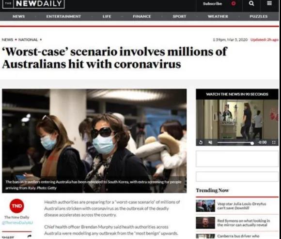 澳大利亞首席醫療官布倫丹墨菲此前表示,目前正研究疫情從“最良性”狀態轉變到病毒在幾周內感染數百萬人的可能情況。澳大利亞正在為“最壞情況”做打算。